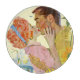 Artiste : Bernard D'Andrea | Femme aux cheveux rouges embrassant homme derrière des tournesols avec une chaise bleue et un chat.