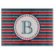 Design à thème nautique avec décoration monographique en forme ronde avec étoiles sur bleu, rouge et blanc rayé arrière - plan