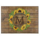 Cette planche à découper personnalisée a votre monogramme brun au centre d'un cadre rond de tournesol brillant et coloré. Les couleurs des tournesols sont principalement de l'or jaune, du vert et du brun orange riche. Le cadre et le monogramme sont placés sur un arrière - plan en faux bois doré qui semble presque luisant. Unique, attrayant et personnalisé pour vous ! *Crédit design à LeCoq Design pour l'image florale utilisée.