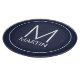 Le design minimaliste moderne présente un monogramme et un nom personnalisés en police sans empattement moderne blanche sur fond bleu marine.