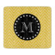 Les rayures modernes de très bon goût, chics, à la mode, jaunes et blancs de chevron, motif de zigzag, motif jaune de chevron, vous pouvez personnaliser avec une initiale blanche de monogramme dans une police moderne, sur un cadre d'étiquette noir de cercle avec une frontière blanche de circulaire de point de polka d'amusement. Motif à la mode de GraphicsByMimi© A pour elle. Employez le gisement de modèle pour ajouter votre initiale de monogramme ou pour marquer avec des lettres ou choisir la "personnaliser il" pour plus d'options de édition comme ajouter votre nom, texte ou la photo pour faire vos propres, unique, personnalisé, un-de-un-aimable conçoivent en fonction du client. Autre colore disponible.