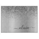 Argent Faux Parties scintillant à étincelle métallique broyée Monogramme de métal brossé Nom de la planche à découper. Cela fait le cadeau parfait de remise de diplômes, anniversaire, mariage, douche nuptiale, anniversaire, baby shower ou bachelorette pour quelqu'un qui aime le luxe glam et les styles chic.