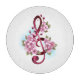 Pink treble clef with delicate, detailed pink Japanese cherry blossoms against white background painted over with light blue paint Blooming pink sakura.