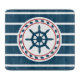 Design nautique avec décoration de voilier en forme ronde sur bleu et blanc rayé arrière - plan