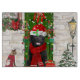 Terre-Neuve Chien Noël assis à l'extérieur de la maison décorée avec la couronne de Noël, le sapin de Noël est une idée cadeau de Noël parfaite pour les amoureux de les chiens.