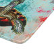 Une représentation dessinée à la main d'une tortue avec un arrière - plan abstrait. Couleurs utilisées : rouge, bleu, turquoise, vert, jaune, violet.