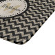 C'est une jolie conception pour la cuisine ou la table, avec les chevrons noirs contrastés avec les chevrons argentés de parties scintillantes de faux d'or. Au centre est votre monogramme en or sur une bannière plus légère de cercle rayée dans le noir. Ajoutez votre nom imposé dans le noir au-dessus du monogramme, et vous avez une image unique, élégante, et attrayante. note de *Please - l'image est imprimée, et ne contient aucune parties scintillantes réelle ou substance.* métallique