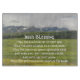 Écrasez et découpez votre nourriture en toute sécurité sur cette planche de coupe en verre de taille moyenne, décorative, qui présente une photo d'un paysage de vallée verte ainsi qu'une Bénédiction irlandaise traditionnelle. Une bonne idée de cadeau pour le ménage!