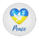 Soutenez le peuple d'Ukraine avec cette planche ronde à découper avec une silhouette de colombe de paix sur un drapeau en forme de coeur de l'Ukraine