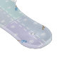 Quatre carrés de bleu pâle et de violet sont décorés de bonhommes de neige en chapeaux et vêtements d'hiver, comme des toboggans, des foulards et des mitaines. La couture blanche ajoute une touche décorative, donnant au motif répétitif l'aspect d'une courtepointe, créant une sensation de douceur pour l'hiver.