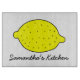 Panneau de découpe en verre personnalisé avec citron jaune et texte personnalisé, nom ou monogramme. Idée cadeau pour cuisine ou restaurant. Illustration de fruit d'agrumes dessinée à la main. Cadeaux de cuisine pour femmes ; maman, tante, soeur, amis, femme, etc.