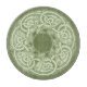 Médaillon circulaire design nautique de nouage celtique entrelacé nageant des poissons dans les tons verts.