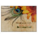 mélange moderne artistique numérique de fleur gerbère orange et une plume paon dans une grunge funky superposition. Customisez avec vos propres mots de sagesse (citations) Nom favori, et salutation quotidienne ou rappel. Offre une atmosphère rustique à la cuisine benchtop.