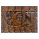 Bois découpé par main avec l'image de regard orientale. Fermez-vous vers le haut du détail de la boîte découpée. Photographie.