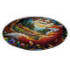 Ce design dynamique reproduit l'apparence du vitrail et présente un beau renard rouge parmi les arbres sous un soleil jaune.