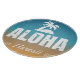 Dirigez aloha avec des couleurs chaudes de plage, rétro arrière - plan. Bords approximatifs dans le style grunge. Icône tropicale d'île avec la paume. © et ® Bigstock® de | - tous droits réservés.