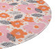 Ce motif moderne de la moitié du siècle comporte les fleurs roses et oranges.