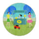 Quand la vie vous donne des citrons, il est temps d'acheter ce Retro Children's Lemonade Stand Round Cutting Board. Ce design d'art minimaliste, de style nostalgique des années 60, présente un côté kitsch merveilleux de la banlieue, où les clôtures de piquets sont abondantes et où les enfants sont des entrepreneurs en herbe. La scène ressemble à une émission de télévision classique, avec une jeune fille qui apprend la valeur d'un dollar tout en faisant fonctionner son stand de limonade vintage. La fille porte une robe bleue, avec une robe bleu clair. Ses cheveux foncés sont arrachés dans une queue de cheval gonflée. Le stand lui-même a été réalisé par un maître artisan. Il est peint dans les tons turquoises, avec un citron jaune géant qui annonce fièrement le prix de l'aubaine de 0,25 $ ! Sur le comptoir, on trouve un pichet plein de rafraîchissements acidulés et liquides. Notre business girl profite des fruits du travail de sa mère, en sirotant un grand verre de limonade. Sur le côté, maman s'approche, portant une autre cruche de limonade fraîchement pressée. Elle porte une robe rose vif, avec un tablier jaune attaché autour de la taille. On dirait que les affaires sont en plein essor pour la princesse de Lemonade. Elle semble avoir fait une vente facile à son père. Cha-ching ! Debout sur la pelouse verdoyante, papa porte un short vert et une chemise jaune qui correspond à la disposition ensoleillée de sa femme. Il se tient derrière une tondeuse à gazon rouge. Nous pouvons voir qu'il a déjà tondu une bande d'herbe, mais, à ce stade, il est difficile de dire s'il travaille dur ou à peine. La tonte semble être au point mort alors qu'il profite d'un verre de limonade acidulé. Ah, rafraîchissant ! Dans l'arrière - plan, on peut voir des mod, des dessins animés dans les tons bleus. Ils sont parfaitement recouverts par un ciel à l'ombre d'un aqua réservé à Hometown, aux États-Unis, dans des oeuvres d'art modernes du milieu du siècle.