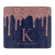 Girly Navy Blue and Rose Gold / Blush rose Parties scintillant perce Monogram Cutting Board avec parties scintillant en or faux rose de mode goutte à goutte sur un arrière - plan bleu marine chic avec votre monogramme et nom personnalisés. Conçu par Cèdre et String. Si vous avez besoin d'aide ou d'articles correspondants, veuillez nous contacter à cedarandstring@gmail.com .