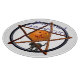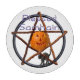 Un citrouille et une perche de chat noir sur un pentacle d'accord rouge-orange pour souhaiter à tout le monde un heureux Samhain.