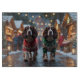 This festive design captures the joyful spirit of the holiday season, featuring an adorable dogs.Nestled in a winter wonderland, complete with a decorated Christmas tree, and beautifully wrapped presents. Snowflakes gently fall, adding a magical touch to the scene, while the vibrant colors of the holiday decorations create a warm and cheerful atmosphere.