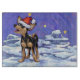 Parade animale Chihuahua Chig in a Santa Hat and Winter Landscape Cadeaux et fournitures de vacances présentent notre art original d'un Chihuahua noir et bronzé vêtu pour les vacances avec un chapeau de Père Noël rouge vif sur sa tête et une couronne de saint vert festif sur son cul avec un arc rouge vif. Sur de nombreux articles, vous trouverez le chien mignon qui va et vient. Notre amusant petit chien noir et bronzé se dresse dans un paysage enneigé avec un ciel étoilé bleu nuit texturé peint par Traci Van Wagoner. Cet art amusant pour les animaux de compagnie conviendra parfaitement aux amateurs de Chihuahua, aux amoureux de les chiens et aux amateurs d'art animal humoristique de tous âges. Rejoignez la Parade des animaux et sourirez quelqu'un que vous aimez. Malheur !