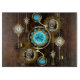 Turquoise lenses with antique watch with brass gears and golden keys on rusty, brown background. Steampunk style.