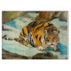 Aquarelle peinte d'un tigre royal en hiver en pause pour boire un verre d'une boule de neige fondante. Le printemps est juste au coin de la rue.