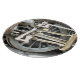 Un design photographique de la roue d'un train à vapeur.