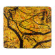 Branches foncées et feuilles d'arbres et d'arbustes jaune et orange vif dans la forêt automnale. Les couleurs et les formes rappellent la notion de veine dorée. Belle saison d'automne