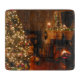 Un magnifique arbre de vacances aux lumières blanches dans une maison décorée. Belle cheminée