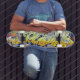 Planches à roulettes abstraites amokes de mur de graffiti. Soyez le seul sur votre bloc avec celui-ci d'une planche à roulettes aimable. Plate-formes par votre garçon Manny. Juste mes pensées !
