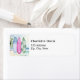 Bl, planches de surf roses et vertes sur une plage avec des palmiers. Personnalisez et ajoutez votre nom et adresse. Lettres noires.