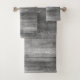 Les planches en bois de grange grise rustique ont modelé l'ensemble de serviette de bain.
