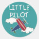An airplane flying through the clouds and text that reads "Little Pilot" on airplane themed cards, t-shirts, and more, great for kids who love planes and flying!