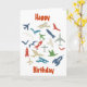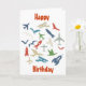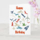 Plane, rockets and birds birthday card