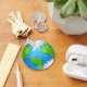 Earth Day Keychain with blue and green earth map and clouds