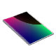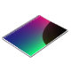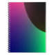 This awesome notebook.features a digitally created image that resembles the crescent of a dark planet surrounded by a cosmic aurora of green, blue, purple and pink.