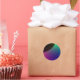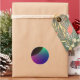 This sheet of round stickers features a digitally created image that resembles the crescent of a dark planet surrounded by a cosmic aurora of green, blue, purple and pink.
