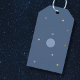 Une étiquette de remerciement de fête d'anniversaire sur le thème de l'espace avec des planètes, des étoiles et une fusée dans un style cartoon sur un fond bleu. Vous pouvez facilement l'utiliser pour remercier les invités d'une fête ou pour tout cadeau que vous réaliserez !