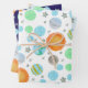 Planets and suns blue first trip birthday wrapping paper sheet