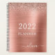 Calendrier de mariage à spirale en acier inoxydable métallisé avec nom et initiale en faux strass rose doré 2022. C'est le cadeau idéal pour un anniversaire de 16 ans, un mariage, une douche de mariée, un anniversaire de mariage, une baby shower ou une soirée d'enterrement de vie de jeune fille pour quelqu'un qui aime le luxe et les styles chics.