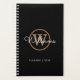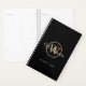 Planificateur de monogramme de nom de script chic moderne noir et or. Personnalisez le nom et la initiale du monogramme pour créer votre propre design unique. Conçu par Thisisnotme©
