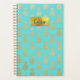 Un planificateur quotidien/mensuel élégant fait en turquoise avec un motif d'ananas doré. Les images d'une plaque de ton or, sur le devant du planificateur, ont un texte personnalisé turquoise prêt à être personnalisé.