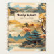 Un paysage coréen avec un temple et des arbres en turquoise et or, surligné d'orange et de nombre, orne la couverture de ce planificateur. Personnalisez la couverture avec votre nom et l'année courante.