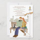 Famille Invitation et amis à une répétition dîner de célébration avec ce design adorable. Le jeune couple est assis sur un banc et regarde un journal tandis qu'un petit chat regarde par curiosité. De petits détails comme une lanterne de rue, des feuilles en chute et un horizon urbain ajoutent au charme.La carte est facile à customiser avec votre libellé, police, couleur de police et choix de six types de papier.