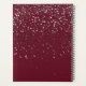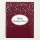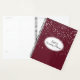 This planner notebook is shown with a petite silver-grey stars print on a rich Bordeaux background. Personalized name for you to customize to yours inside a White oval with dual coordinating coloured borders of putty and plum on the front. Back same colour and stars print. Text is shown in Black.
