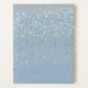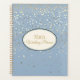 This planner notebook is shown with a petite Champagne stars print on a Antique Blue coloured background. Personalized name for you to customize to yours inside an Ivory oval with dual coordinating coloured borders on the front of neo mint, steel, matte gold text. Back same colour and stars print.