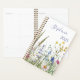 Organize your year with this beautiful planner featuring a charming watercolor wildflower design. Adorned with a vibrant meadow of blue, yellow, and pink blossoms, this planner can be personalized with your name for a unique touch. It's the perfect gift for students, teachers, busy professionals, or anyone who loves nature and staying organized in style.