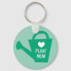 Plant Mom keychain with custom monogram and cute green watering can. Funny cap for plant lover or gardener. Green canister with heart. Change into any custom colours.